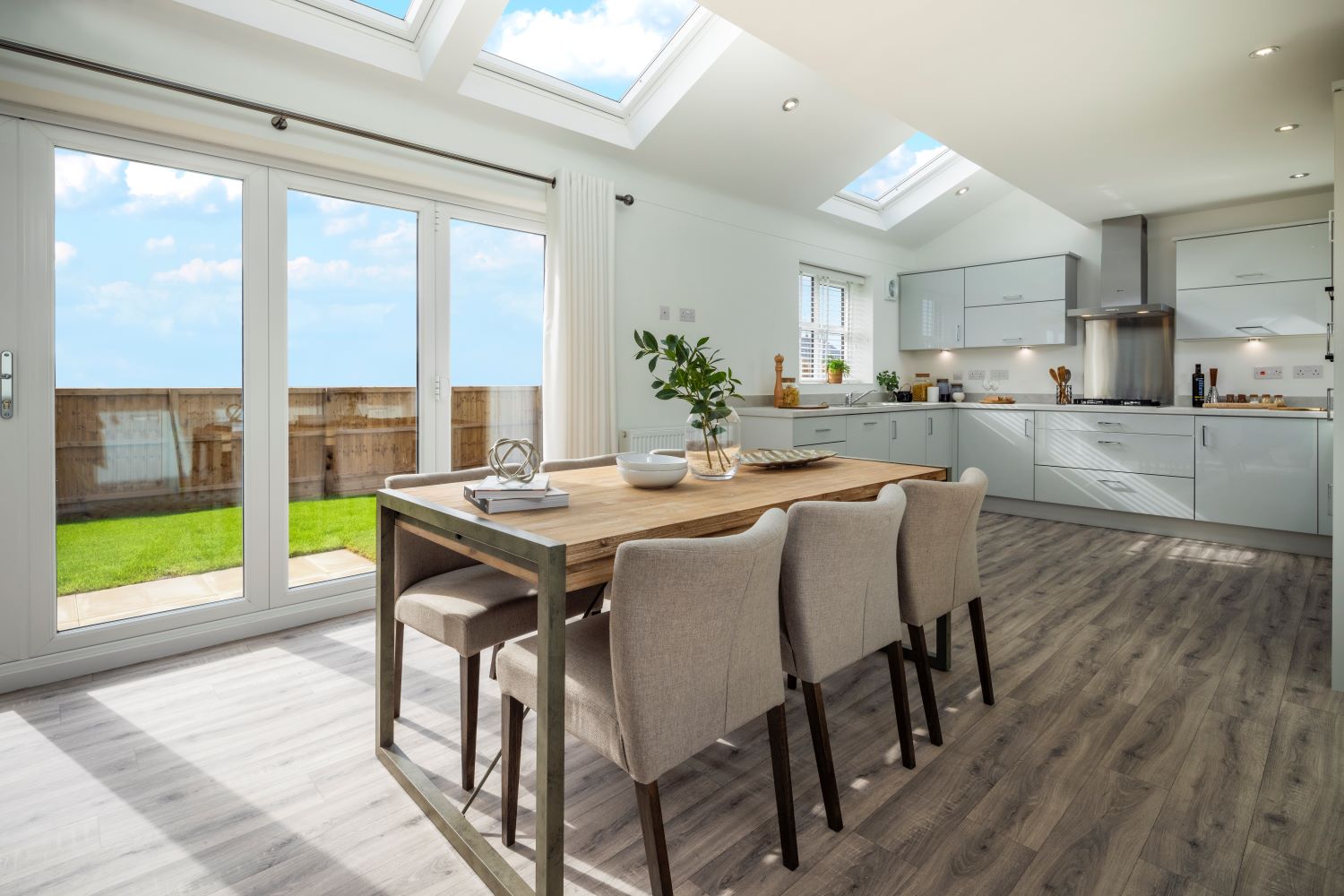 Step into this exceptional home where natural light takes centre stage. The wonderful open-plan kitchen/dining/family room spreads the full width of the house and features a series of skylight windows adding a distinctive sense of style. Upstairs, there’s plenty of space for everyone, with a family bathroom and 4 well-planned double bedrooms, including the master bedroom with its very own spacious en-suite.